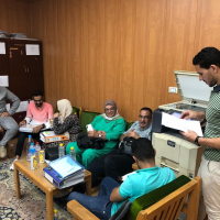 فريقا من مركز ضمان الجودة بجامعة المنصورة للوقوف علي مدي جاهزية الكلية للتقدم للاعتماد الاكاديمي وذلك ضمن استعداد الجامعة للتقدم للاعتماد.