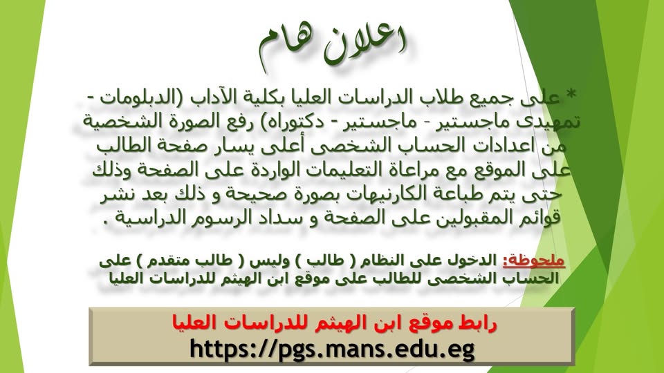 اعلان هام لطلاب الدراسات العليا