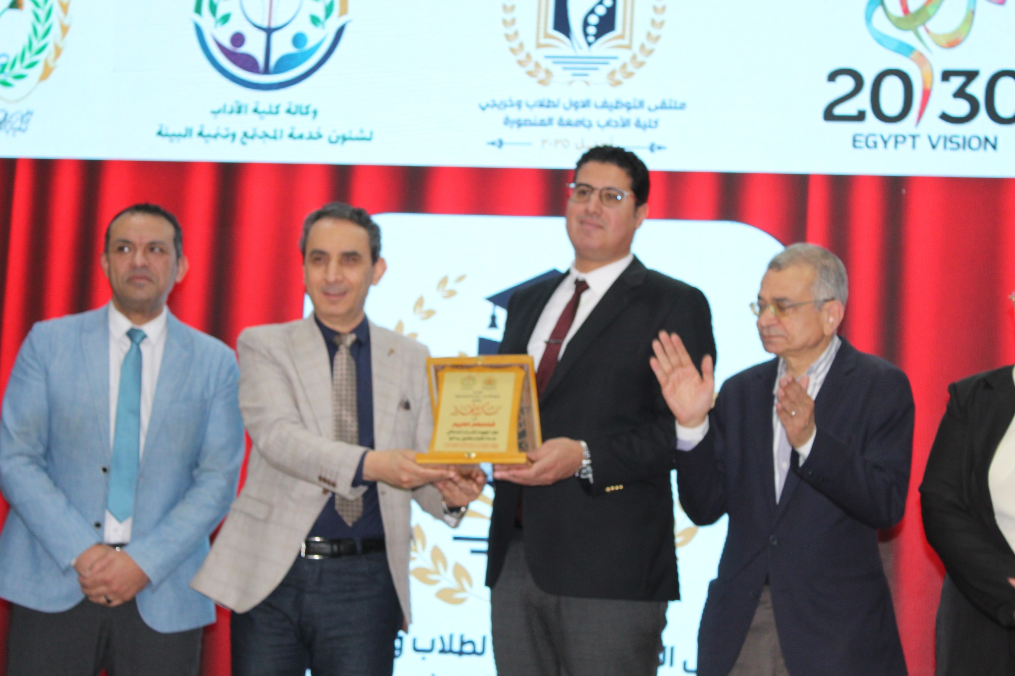 ا.م.د أحمد أنور العدل نائب محافظ الدقهلية وأستاذ علم الاجتماع المساعد بالكلية والذى حرصت إدارة الكلية على تواجده ممثلا للنماذج المميزة من أبنائها والذى أعلن فى كلمته عن ربط الملتقى بأيقونة الوظائف بالمحافظة بالتعاون مع ا. شريف عنتر رئيس مجلس إدارة جمعية الدلتا لريادة الأعمال