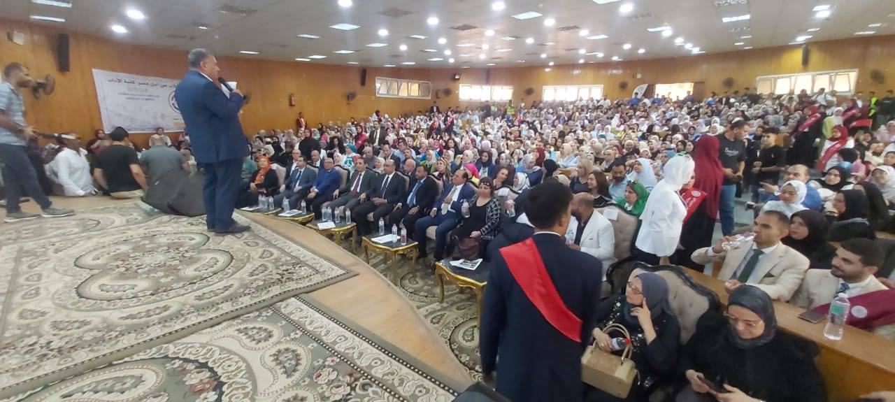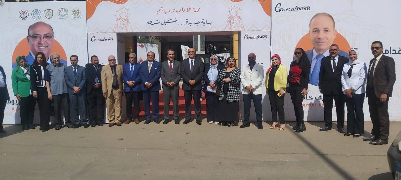 أقامت كلية الآداب يوم الأحد حفل استقبال الطلاب الجدد بالكلية للعام الجامعي ٢٠٢٥/ ٢٠٢٦ وسط حضور كثيف وكبير من السادة عمداء الكلية ووكلائها السابقين، والسادة رؤساء الأقسام العلمية وأعضاء هيئة التدريس وأعضاء الهيئة المعاونة والطلاب الجدد.