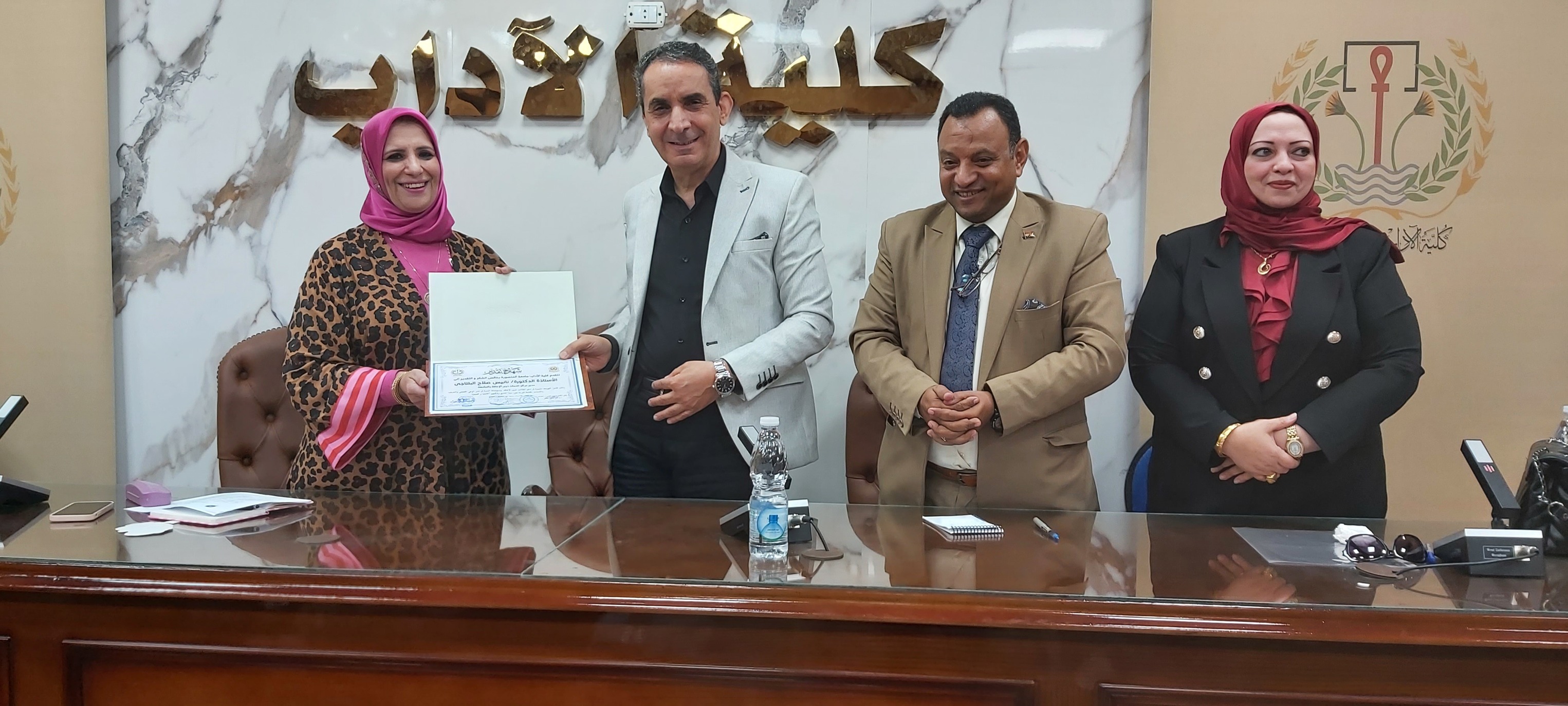 وذلك تحت رعاية: أ.د/ شريف يوسف خاطر رئيس جامعة المنصورة أ.د/ محمد عطية البيومي نائب رئيس الجامعة لشئون التعليم والطلاب وريادة:أ.د/ محمود سليمان الجعيدي عميد كلية الآداب أ.د/ أيمن وهبي طاهر وكيل الكلية لشئون التعليم والطلاب وإشراف: أ.م.د/ كريم عبد الغني عبد العاطي – منسق الأنشطة الطلابية بالكلية د/ شيرين عبد الوهاب – منسق ذوي الهمم بالكلية أ./ عبد الرحمن زيد – مدير إدارة رعاية الطلاب استضاف اللقاء: أ.د/ نانيس البلتاجي – مدير مركز خدمات الأشخاص ذوي الهمم بجامعة المنصورة د/ إبراهيم أبوزيد – نائب مدير المركز